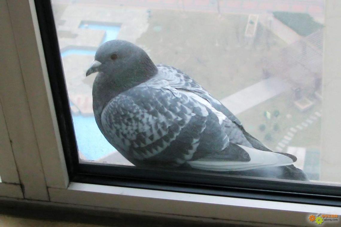 鸽子停在我家窗前